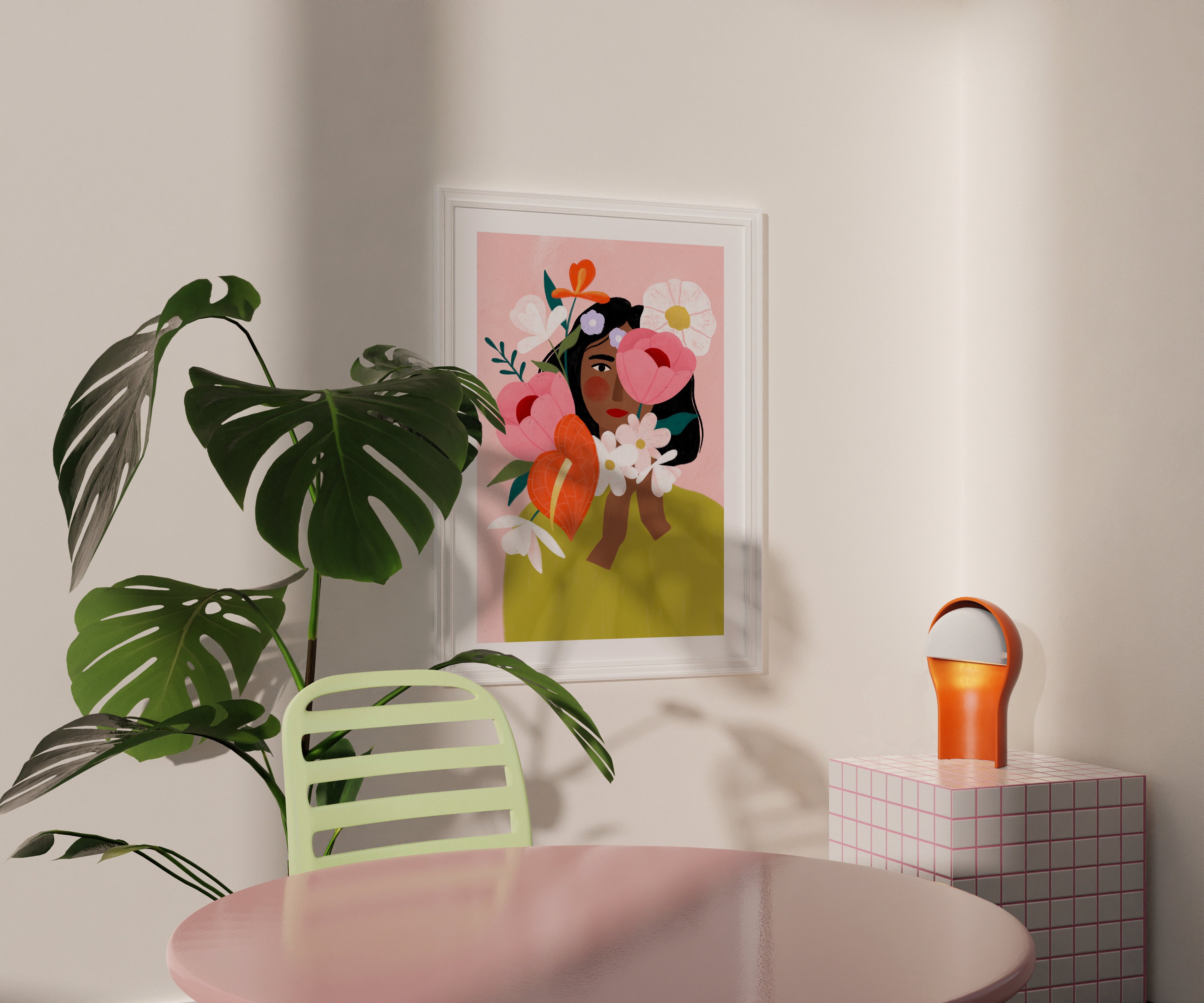 Transform your space with our stunning Floral Art Print, featuring a woman beautifully hidden behind a vibrant array of botanical blooms, perfect for plant mums and flower enthusiasts alike. This unique illustration adds a touch of nature's magic to any wall, making it an ideal birthday gift that brings joy and inspiration.