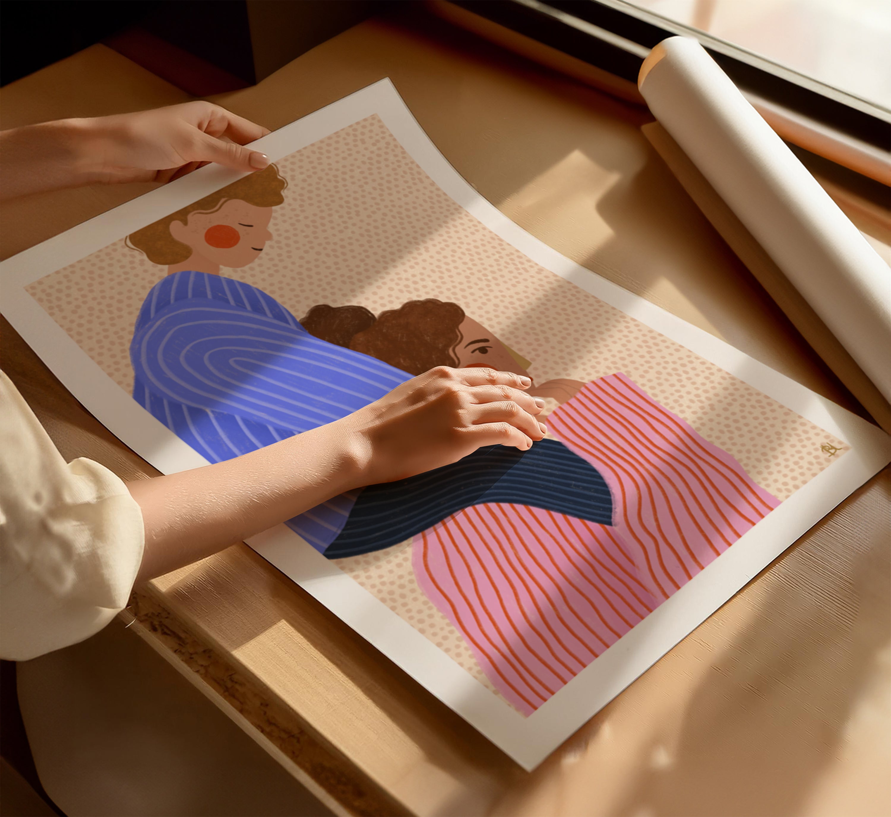 All art prints are wrapped in tissue paper and shipped in robust mailing tubes, ensuring they arrive safe and secure.